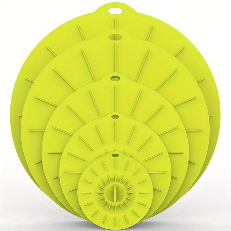 【MULTIPURPOSE VERSATILITY】Totally 5 Sizes- 4 inch. 6 inch. 8 inch. 10 inch and extra large 11.7nch. The sizes in between vary and they will fit almost anything!! Such as Pot. Pan. Dish. Plate.Bowls.Container.Coffee Cup Jar.Can and more. Great for Cooking and Baking .Also Perfectly and Safely use for Microwave. StoveTop. Oven. Fridge and Freezer Safe. Withstands temperatures from -104 degrees F to 450 degrees F.