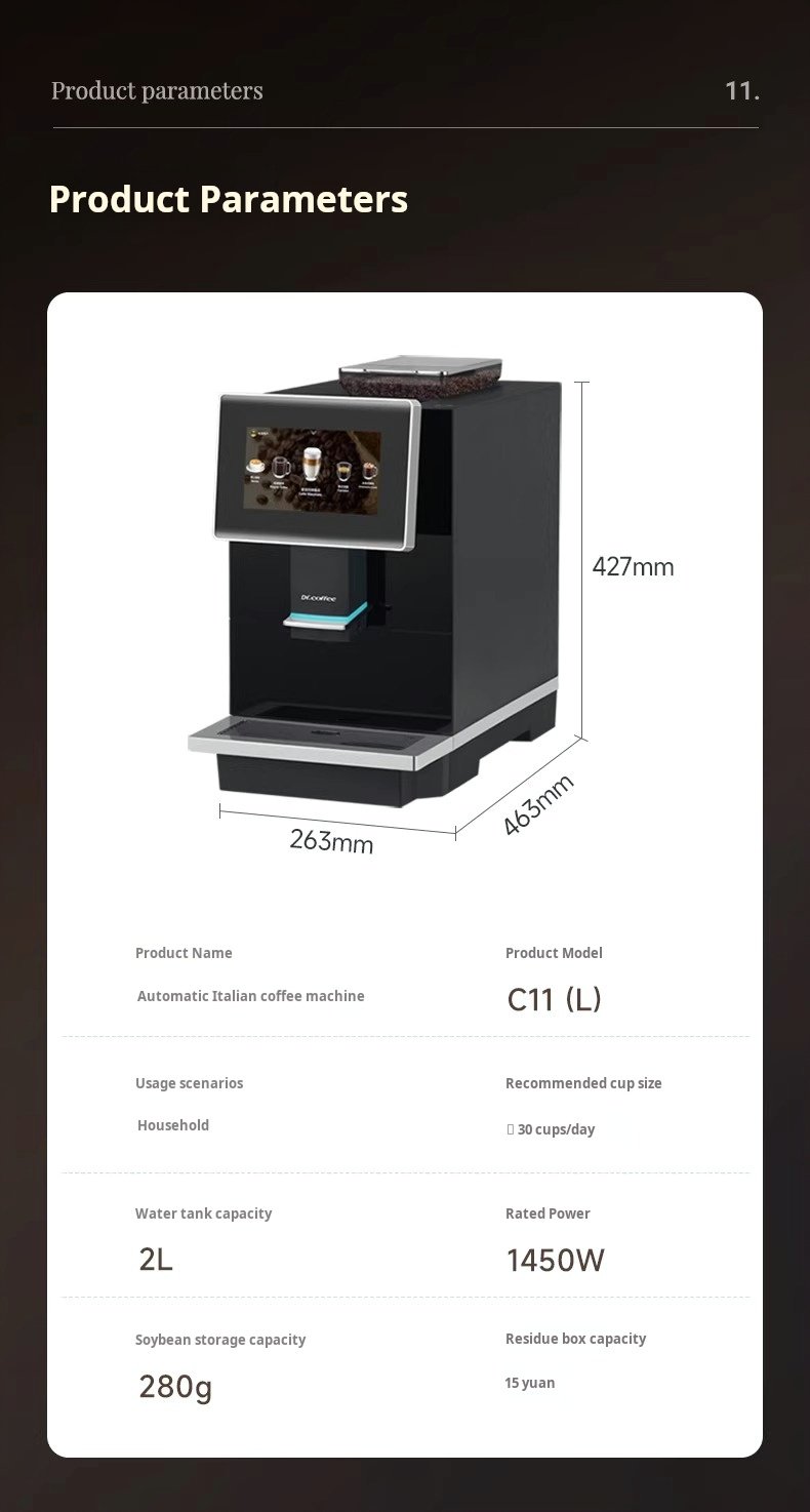 Fully Automatic Espresso Coffee Machine C11L / C10 Plus – One-Touch Latte & Cappuccino Maker, Bean to Cup, Home Barista Machine