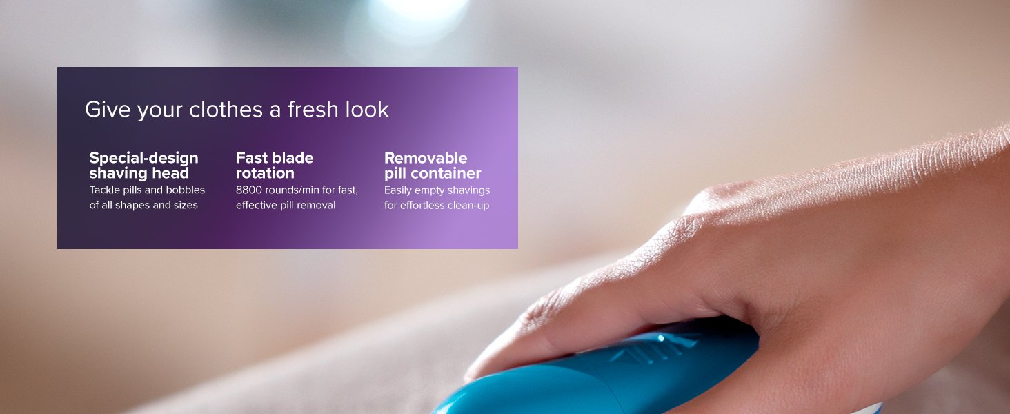 Philips Fabric Shaver, Removes Fabric Pills, Suitable for All Garments, Large Blade Surface, Cleaning Brush, Includes Batteries, Blue (GC026/00)
