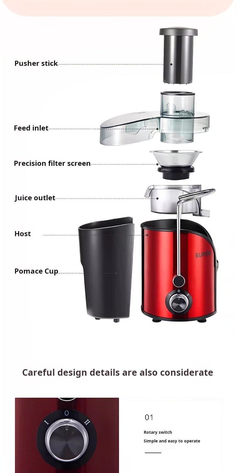 The pulp outlet never clogs — smooth and efficient.