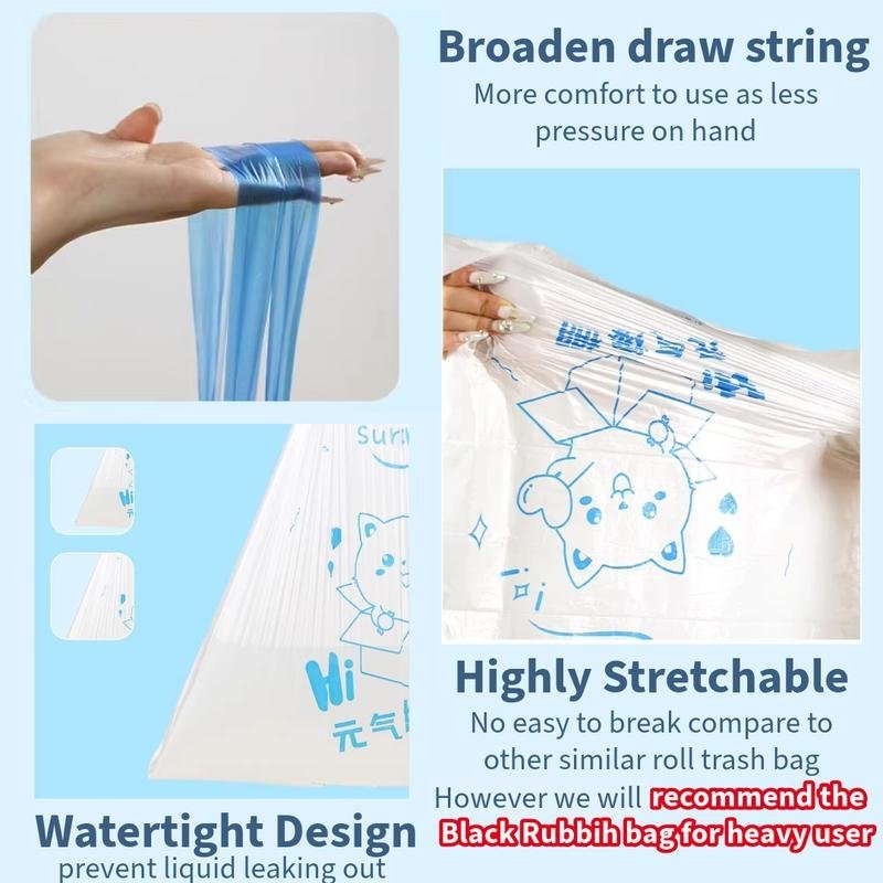 Our trash bags are designed with extra thickness and strength to handle heavier loads. The drawstring design not only makes sealing easy but also allows for convenient carrying. With a high-value, large roll pack, these bags are the perfect solution for your daily cleaning needs!